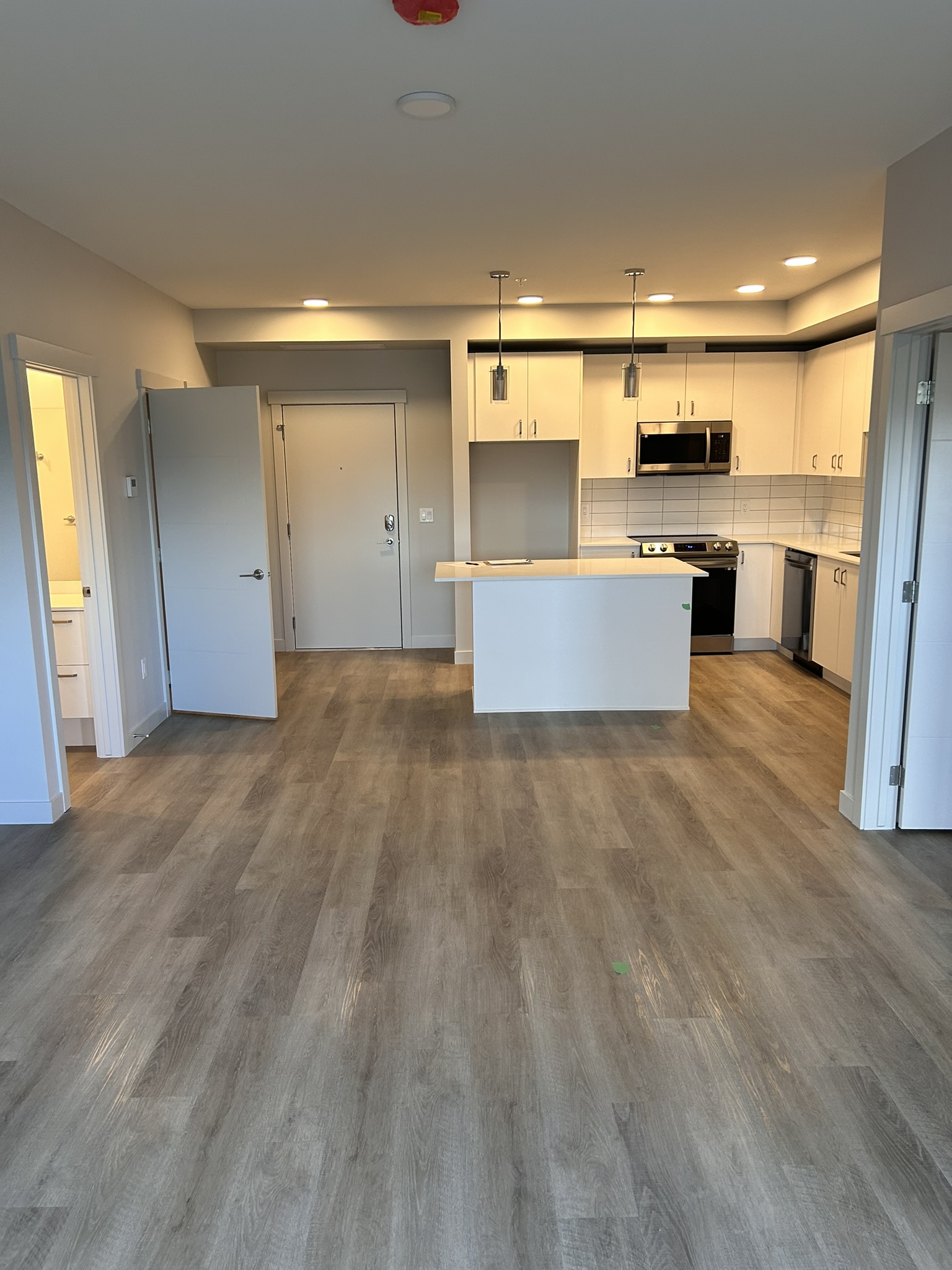 Discover comfort and style in this 2 bedroom, 2 bathroom unit at Mosaic. With a soothing "Sky" interior color scheme and sleek subway tile backsplashes, the kitchen feels modern and inviting. Enjoy practical features like roller blinds, quartz countertops, and stainless steel appliances, including a ceramic stovetop range and dishwasher. The unit is equipped with an energy-efficient washer and dryer, soft close cabinets, and full extension drawers for added convenience.